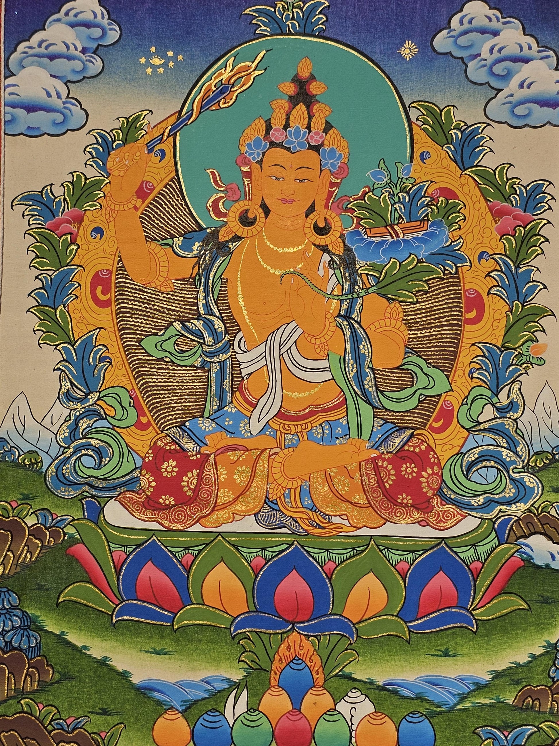 Manjushree Border Thangka | Tibetan Deity Thangka for Meditation Room Decor | Wisdom Buddha Painting for Altar